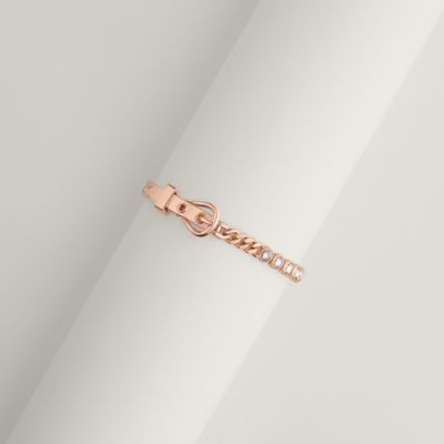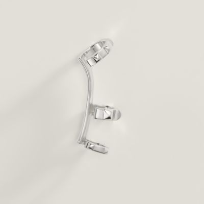 Affirmation of style, Hermès men's jewelry explores the tension between raw materials and architectural design. Silver, leather, and gold unite to create pieces with assumed masculinity, where function inspires form. Discover the modern purity and radical graphics of our [white gold wedding rings], discreet symbols of an eternal attachment. Elegance is also played out in functional details: our [cufflinks] revisit saddle studs or motifs from the Ex-Libris collection to sublime the shirt with wit. The iconic Chaîne d'ancre link, inspired by the marine universe, structures many of our [bracelets], whether braided with Tournis leather or sculpted in solid metal. This graphic strength is also worn as a long necklace: explore our [necklaces] with assertive volumes, and let yourself be captivated by the mineral and sophisticated radiance of our [white gold necklaces], touches of cold light on the silhouette.