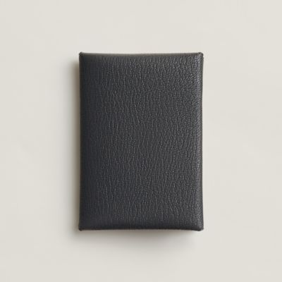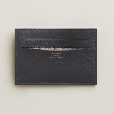 Discover the refined minimalism of Hermès card holders, discreet companions for him and her. From the ingenious [Citizen Twill] lined with silk to clean lines, each model celebrates [leather] in all its forms, from grained to smooth calfskin. These small leather goods accessories combine compact functionality and hand finishes. Available in a timeless palette including deep [black] or soft [beige], our selection slips elegance into every pocket.