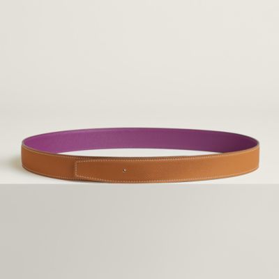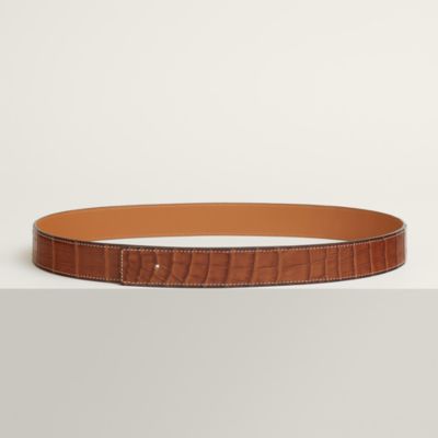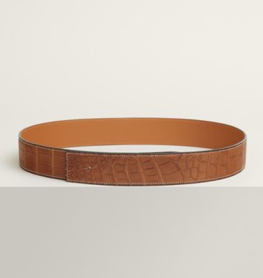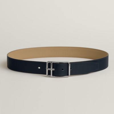 H au Carre belt buckle & Reversible leather strap 32 mm, Color: Beige/Natural