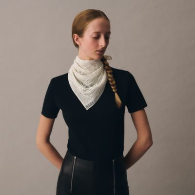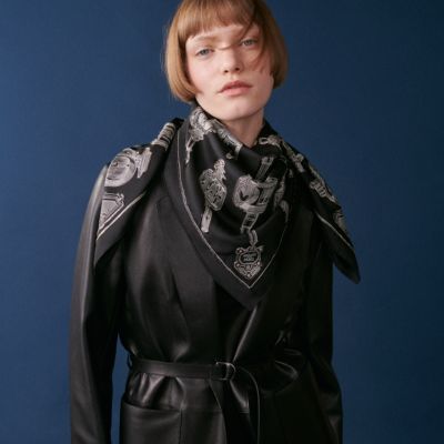 Delve into the colorful, ethereal and sensory world of Hermès scarves. Countless ways to style: The Maison's emblematic silk scarves are best accessorized using scarf rings, while larger Hermès shawls can be knotted to reflect your creativity. Whether draped around your neck or tied in your hair, glistening rectangle silk scarves and Hermès bandanas offer infinite possibilities to express your style with a touch of effortless elegance.