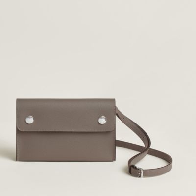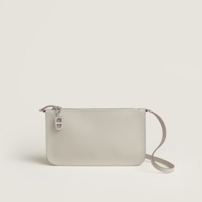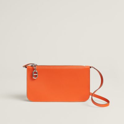 Combine lightness and style with Hermès To Go wallets, true hybrids between small leather goods and bags. Designed for absolute freedom of movement thanks to their strap, they come in timeless shades like [black] or the iconic [orange]. These compact cases, crafted in resistant [leather] or enhanced with [silk] details, hold your essentials with elegance. Palladium or gold finishes perfect these modern companions.