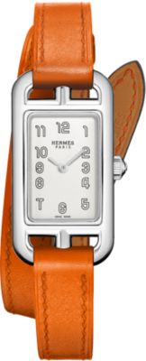 Discover Hermès Time, a singular vision of time combining whimsy and rigor. Explore our collections of [women's watches], where elegance is adorned with precious materials and deep [black] dials. Watchmaking ingenuity is also expressed in our [men's watches], animated by the precision of [quartz] or poetic complications like the [moon phase]. From the sporty lines of the [Hermès Cut] to padlocked icons like the [Kelly], each timepiece reflects our savoir-faire. Finally, personalize your style thanks to our interchangeable [straps].