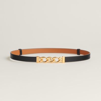 Maillon H Tresse belt buckle & Reversible leather strap 13 mm, Color: Black