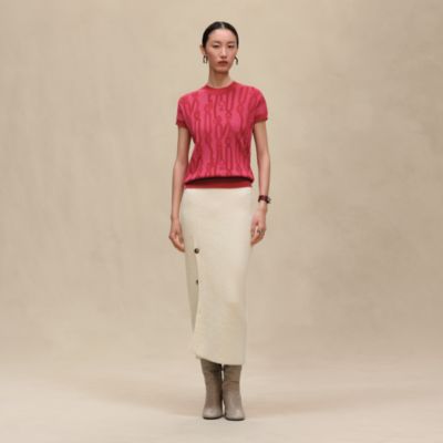 "Ferronnerie Remix" short-sleeve twillaine sweaterColor White