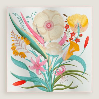 Delve into the colorful, ethereal and sensory world of Hermès scarves. Countless ways to style: The Maison's emblematic silk scarves are best accessorized using scarf rings, while larger Hermès shawls can be knotted to reflect your creativity. Whether draped around your neck or tied in your hair, glistening rectangle silk scarves and Hermès bandanas offer infinite possibilities to express your style with a touch of effortless elegance.