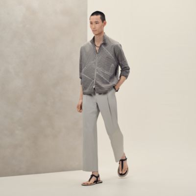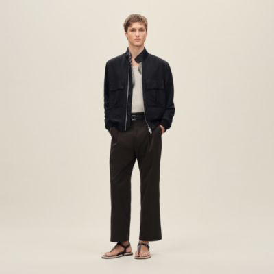 Savant mélange d'intemporalité et d'innovation où se croisent matières naturelles et techniques, le prêt-à-porter homme déploie la sensualité de ses manteaux, vestes et blousons dans une quête haute en couleur de nouveaux volumes et de savoir-faire inédits.