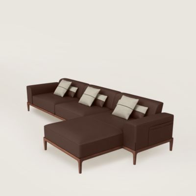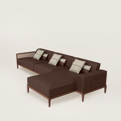 Sofa Sellier 2 places avec méridienneCouleur Marron
