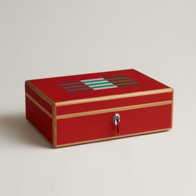 Certains objets ont pour mission de recueillir le superflu pour ne garder que l'essentiel. Les vide-poches et cendriers en porcelaine ou en cuir accueillent les petits riens de la journée avec une distinction souveraine, devenant des points de repère visuels dans une entrée ou sur un bureau. Pour protéger ce que l'on a de plus précieux, nos boîtes et coffrets allient la rigueur de la structure à la douceur du gainage intérieur. Ces écrins sont des refuges pour les souvenirs, des objets de transmission qui protègent autant qu'ils décorent, illustrant la maîtrise de la maison pour l'art du rangement et du secret.