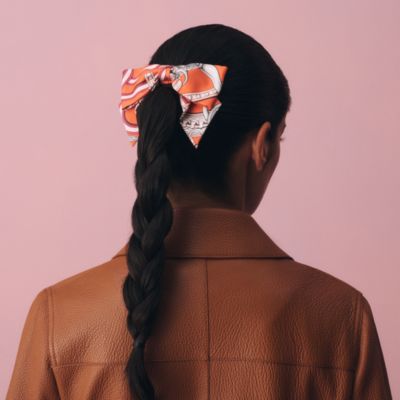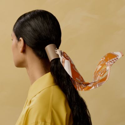Runden Sie Ihre Frisur mit den Haaraccessoires von Hermès ab – Symbole, die für Eleganz und Stil stehen. Entdecken Sie eine exklusive Kollektion aus Haarbändern, Haarspangen, Haargummis und Haarreifen. Lassen Sie sich vom edlen Charakter des Leders, der Weichheit der Seide und der Wärme des Kaschmirs verzaubern – außergewöhnliche Materialien, die sich in den ikonischen Farben der Maison präsentieren: intensives Schwarz, tiefes Blau und leuchtendes Orange. Von zarten Haaraccessoires aus Seide über originelle Haarspangen aus Leder bis hin zu Haargummis aus Kaschmir: In unserer Kollektion finden Sie das perfekte Accessoire, um Ihre Frisur zu perfektionieren und Ihren Hermès Stil zu betonen.