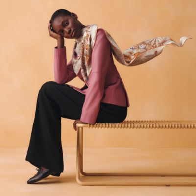 Der Schal umwickelt, macht sich lang und passt sich dem Rhythmus des Tages an. Ein Schritt zurück – hier kommt der Stil. Zwei Schritte vorwärts – eine Haltung voller Energie.
