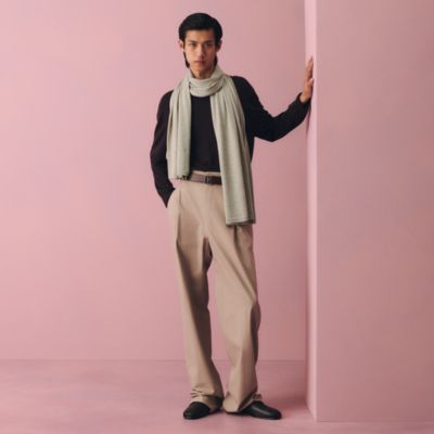 Essential and well-balanced, knitwear completes the look in a modern collage of textures.