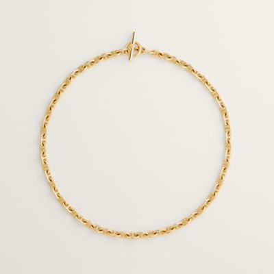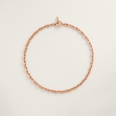 The Hermès necklace draws a streak of light on the skin with fluidity and movement, and magnifies the carriage of the head. The art of the link unfolds there with virtuosity, transforming precious metal into a sophisticated embrace. Affirm a solar presence by exploring our [yellow gold necklaces and long necklaces], whose vibrant radiance revisits the House's iconic chains. For a more intimate but equally radiant sparks, discover the finesse of our [yellow gold pendants], true precious talismans. Finally, let yourself be enchanted by the delicate warmth of our [rose gold necklaces and pendants], creations with contemporary sensuality that melt onto the skin.