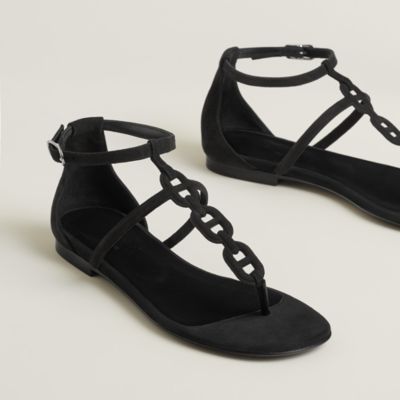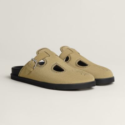 Las icónicas sandalias Oran d'Hermès levantan pasiones entre nuestra elegante y femenina selección. En esta efervescencia de deportivas de estilo urbano y desenfadado y de botas en piel con cierres emblemáticos, podrá encontrar a cada paso su calzado estrella.