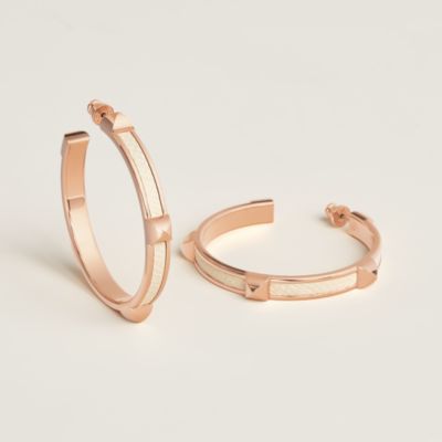 Mention spéciale aux boucles d'oreilles en plaqué or, brillant hommage au savoir-faire maroquinier d'Hermès. De l'iconique O'Kelly aux As de Cœur, cuir et or se rencontrent dans des pièces expertes en la matière.