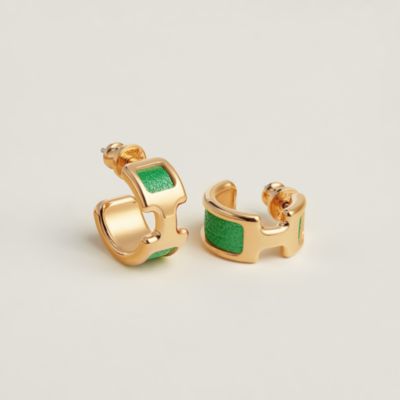 Fusion de couleurs et de matières, les boucles d'oreilles en bois Hermès mêlent à une nouvelle technique de laque en dégradé des reflets acidulés. Trouvez la paire rare parmi nos modèles petits et grands.