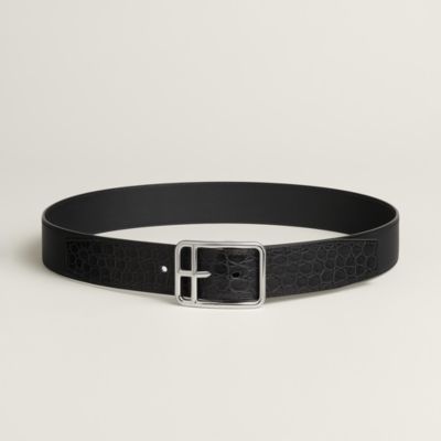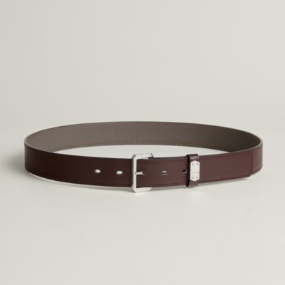 Boucle de ceinture H au Carré & Cuir de ceinture réversible 32 mm, Couleur: Marron