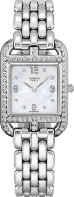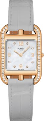 Découvrez l'Heure Hermès, une singulière vision du temps alliant fantaisie et rigueur. Explorez nos collections de [montres pour femme], où l'élégance se pare de matières précieuses et de cadrans au [noir] profond. L'ingéniosité horlogère s'exprime aussi dans nos [montres pour homme], animées par la précision du [quartz] ou des complications poétiques telle la [phase lunaire]. Des lignes sportives de la [Hermès Cut] aux icônes cadenassées telle la [Kelly], chaque garde-temps reflète notre savoir-faire. Personnalisez enfin votre style grâce à nos [bracelets] interchangeables.