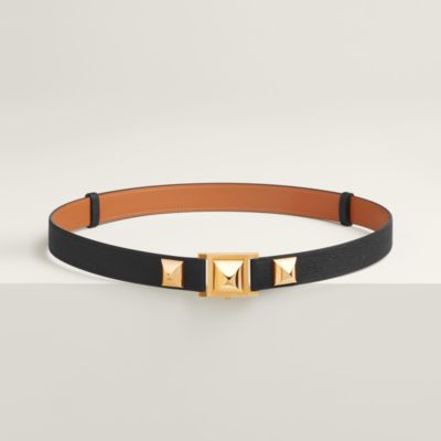 Bride d'Apparat belt buckle & Reversible leather strap 32 mm, Color: Black