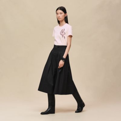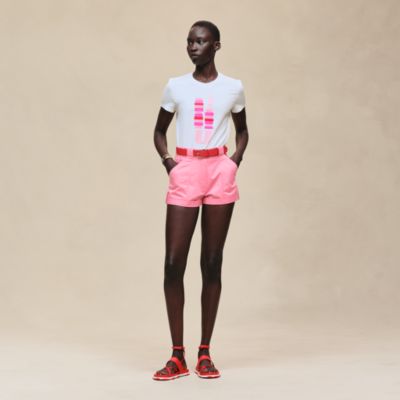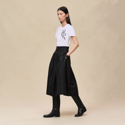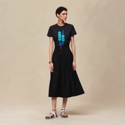 T-shirts and sweatshirts with colorful tones, shirts and blouses in plain or printed silk: the modern look of the women's ready-to-wear collection offers a vast array of shapes and materials for a chic, comfortable silhouette.