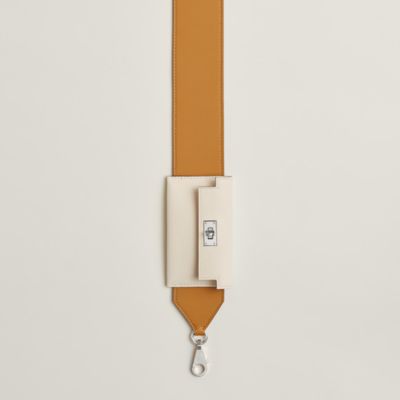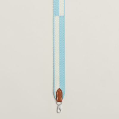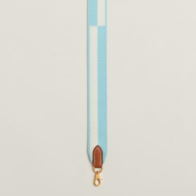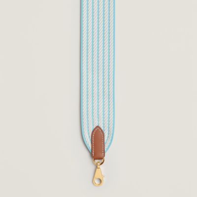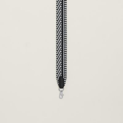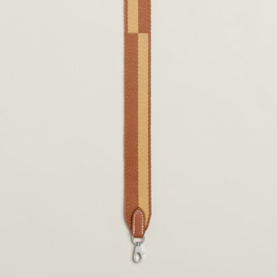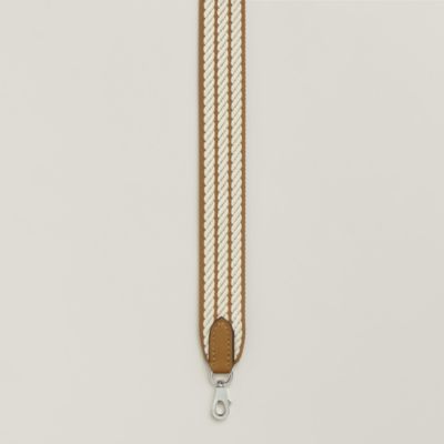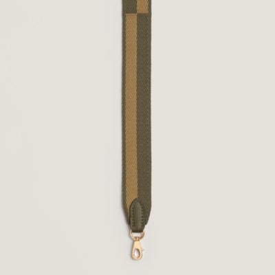Transform your favorite bags thanks to the Hermès strap collection. An invitation to play and personalization, our straps in braided canvas or leather reveal bold graphic motifs. Explore these [bag accessories] to reinvent your allure according to your desires. Featuring palladium or gold-plated snap hooks, they allow you to vary the carry, from shoulder to crossbody, thus combining comfort, functionality, and a unique style.