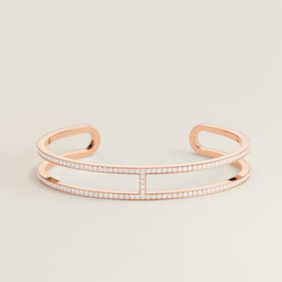 太陽のように眩しいフェミニニティを体現する、エルメスのゴールド ジュエリー コレクション。メゾンの手仕事がゴールドという貴重な素材を光の彫刻に変えます。エルメスのローズゴールド リングのやわらかな輝き、あるいはホワイトゴールド ブレスレットの純粋でアーキテクチュラルな眩さに魅了されてみませんか。メゾンの調和の探求は、顔まわりのジュエリーにも受け継がれています。大胆なボリューム感が魅力のエルメスのピアス&イヤリングは、太陽の光を捉えるためにデザインされています。メゾンの職人技が注ぎ込まれたネックレスとソートワール(ロングネックレス)の流れるような美しさをご覧ください。メゾンを象徴するデザインコードをお探しの方には、ジュエリー コレクション《ケリー》がおすすめ。バッグ《ケリー》を飾る機能的な金具を魅惑的なジュエリーとして表現しました。