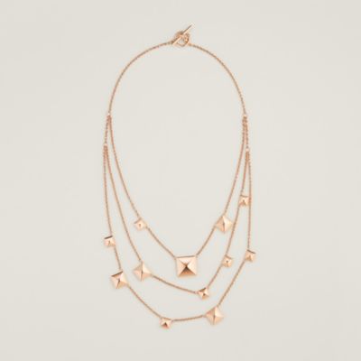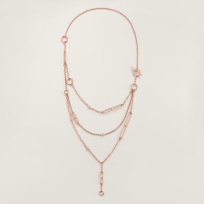 《ケリー》にインスパイアされたゴールドのペンダントと、彫刻のようにボリューム感のあるゴールドのネックレス。どちらにしようか迷うはず。ひとつ確かなこと。それは、アトリエが誇る並み居るアイテムの中で、エルメスの新しいゴールド製ブレスレットがあなたとの出会いを待っているということです。