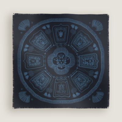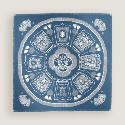 カシミヤマフラー 《イカット》 4Hカラー ブルー