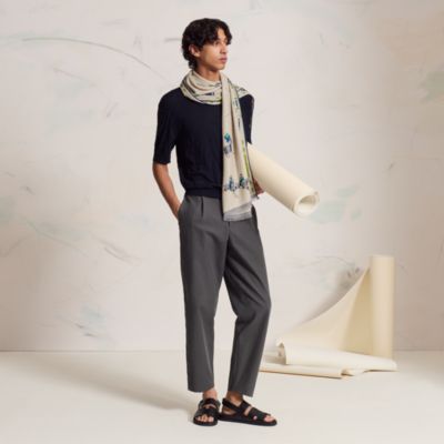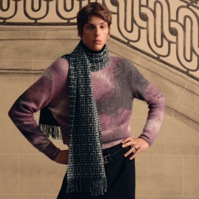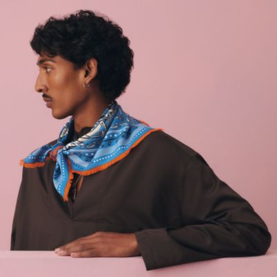 天と地のあいだを結ぶシルク。スカーフが頬をかすめ、ひとつひとつのループが淡い夢の輪郭を残して旅へ。