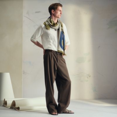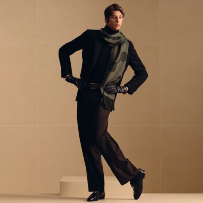 スカーフの出番です。シルエットを舞台に、華やかな主役をご一緒します。