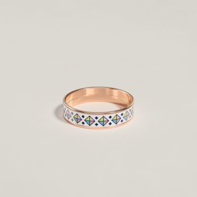 エレガンスと大胆さが融合した揺るぎないスタイルを表明するエルメスのリング。比類なきクリエイティビティとノウハウが詰まったその世界では、ピンクゴールド製リングが放つタイムレスな輝きや、メゾンの象徴的なラインを引き立てる一つ一つの仕上げが、その魅力を放ちます。リングには、シェーヌ・ダンクルの海のエスプリや、クルー・メドールの反抗的な個性、オランプのアンティークな優雅さなど、エルメスのアイコニックなテーマが表れています。意外性のある上質な素材を使用している点も特徴的で、鮮やかなエナメルは強い発色のエナメル リングを生み、しなやかなレザーは揺るぎない個性でメゾンのクリエイションを装飾します。情熱をこめて仕上げられた上質な素材により、エルメスのアール・ドゥ・ヴィーヴル(生活の芸術)を称える個性的なクリエイションが生まれています。