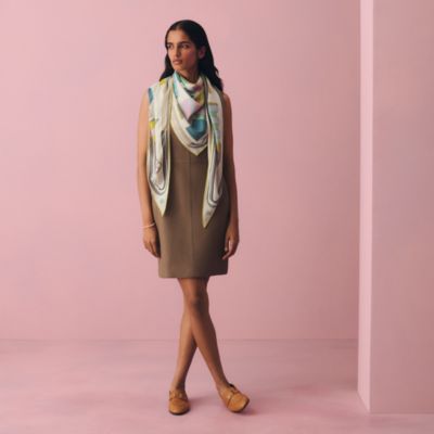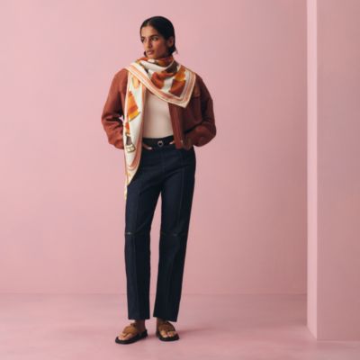 カシミアが描き出す幾何学模様が、都市のラインをそっとなぞる。まるで街と戯れるかくれんぼのように。