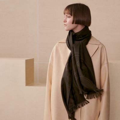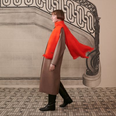 カシミアが描き出す幾何学模様が、都市のラインをそっとなぞる。まるで街と戯れるかくれんぼのように。