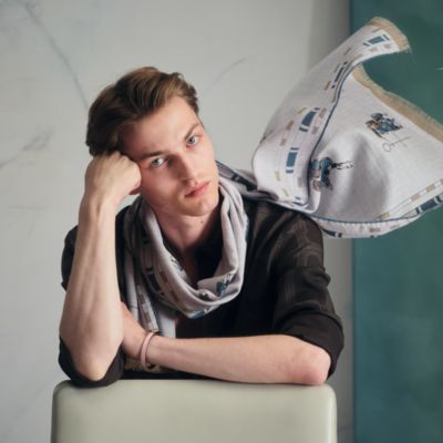 꼼꼼하게 묶인 반다나와 여유롭게 둘러 연출한 스카프는 모두 같은 소재로 완성되었지만, 각자 다른 이야기를 펼쳐냅니다. 일상에 스며든 실크의 섬세한 우아함을 경험해 보세요.