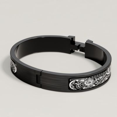 La collection d’accessoires pour homme Hermès surprend par ses boutons de manchette au graphisme espiègle, ses bracelets au cuir tendre et ses porte-clefs signatures.