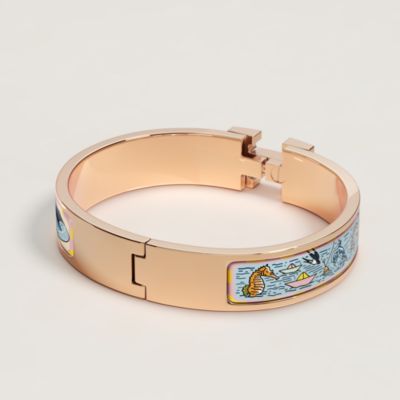 The Hermès wooden bracelets are precious treasures of bold craftsmanship. The object of your affection is sure to be found in the Nœud Marin collection, which features lacquered wood inspired by signature Hermès motifs. Or perhaps you might prefer the beautiful colors of our fine Fusion bracelets.