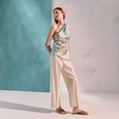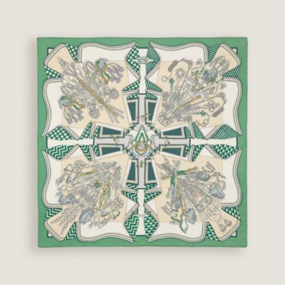Delve into the colorful, ethereal and sensory world of Hermès scarves. Countless ways to style: The Maison's emblematic silk scarves are best accessorized using scarf rings, while larger Hermès shawls can be knotted to reflect your creativity. Whether draped around your neck or tied in your hair, glistening rectangle silk scarves and Hermès bandanas offer infinite possibilities to express your style with a touch of effortless elegance.