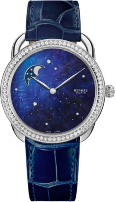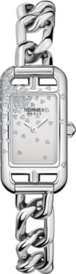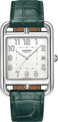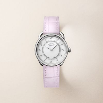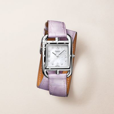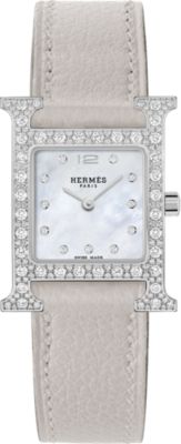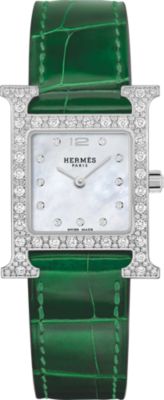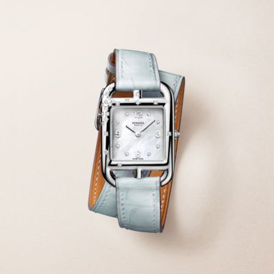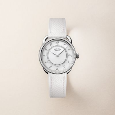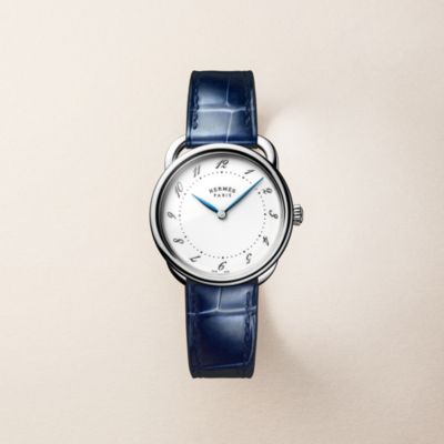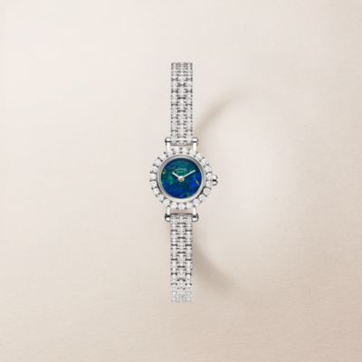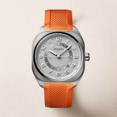 Descubra la Hora Hermès, una visión particular del tiempo que fusiona fantasía con precisión. Descubra nuestras colecciones de [relojes para mujer], que se visten con elegancia de materiales preciosos y esferas de color [negro] intenso. El ingenio relojero también se aplica en nuestros [relojes para hombre], que presentan la precisión del [cuarzo] y complicaciones poéticas como la [fase lunar]. Desde las líneas deportivas del [Hermès Cut] hasta los icónicos candados del [Kelly], cada pieza refleja nuestro savoir-faire. Por último, personalice su estilo con nuestras [correas] intercambiables.