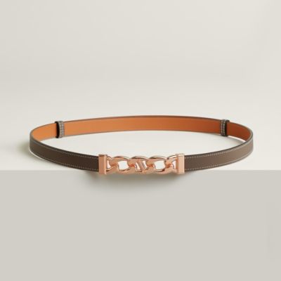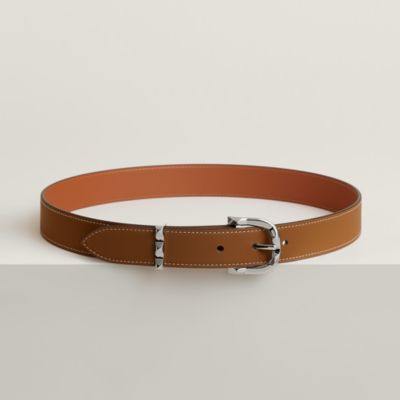Maillon H Tresse belt buckle & Reversible leather strap 13 mm, Color: Beige/Natural