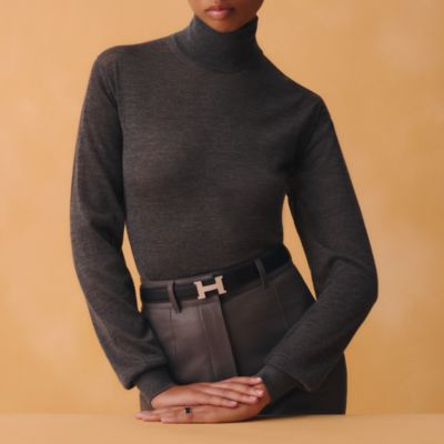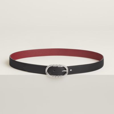 Mini Constance Martelee belt buckle & Reversible leather strap 24 mm, Color: Black