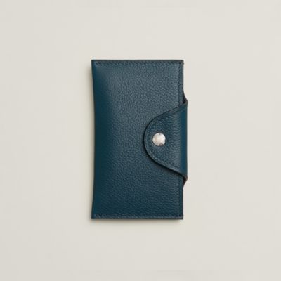 Discover the refined minimalism of Hermès card holders, discreet companions for him and her. From the ingenious [Citizen Twill] lined with silk to clean lines, each model celebrates [leather] in all its forms, from grained to smooth calfskin. These small leather goods accessories combine compact functionality and hand finishes. Available in a timeless palette including deep [black] or soft [beige], our selection slips elegance into every pocket.