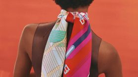 The height of the season: The Violetta sandals in monochrome or contrasting velvet are highlighted with piping in aged gold nappa calfskin extending from the new double spur buckle. Subtle graphics transcended by a platform sole and a confident heel.