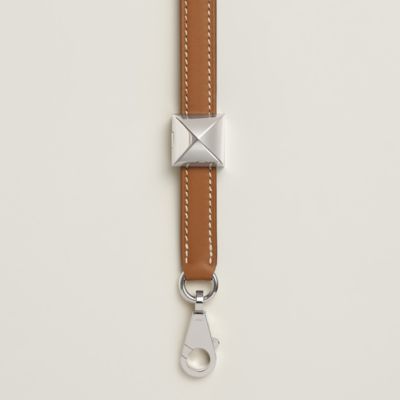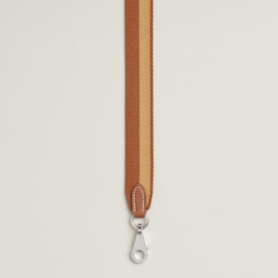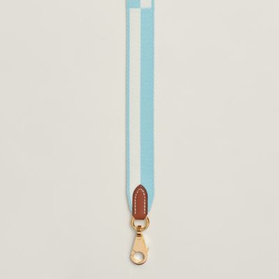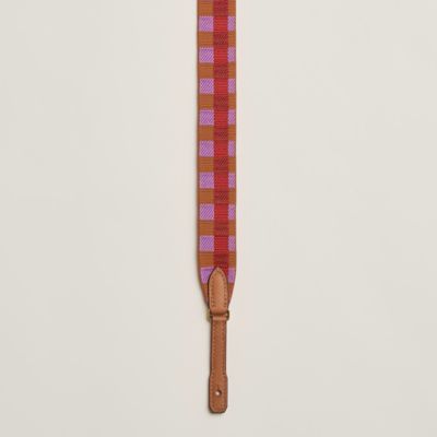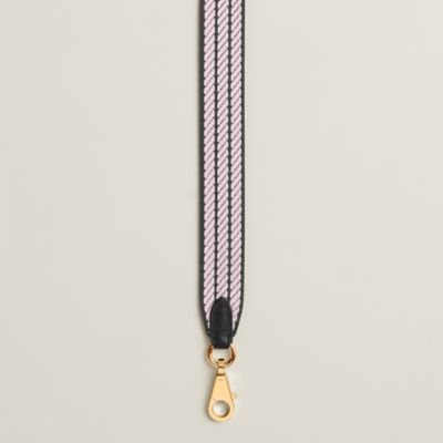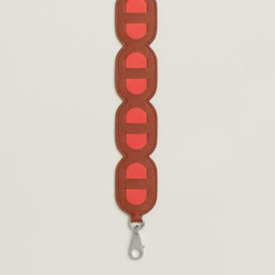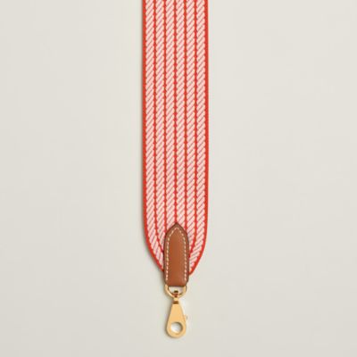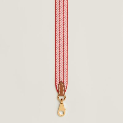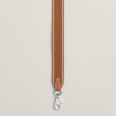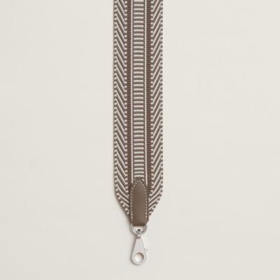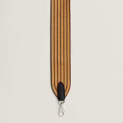 Transform your favorite bags thanks to the Hermès strap collection. An invitation to play and personalization, our straps in braided canvas or leather reveal bold graphic motifs. Explore these [bag accessories] to reinvent your allure according to your desires. Featuring palladium or gold-plated snap hooks, they allow you to vary the carry, from shoulder to crossbody, thus combining comfort, functionality, and a unique style.