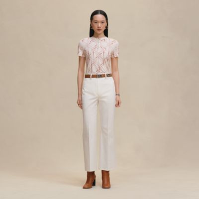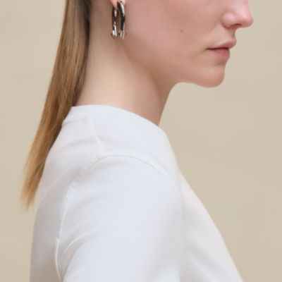 T-shirts and sweatshirts with colorful tones, shirts and blouses in plain or printed silk: the modern look of the women's ready-to-wear collection offers a vast array of shapes and materials for a chic, comfortable silhouette.