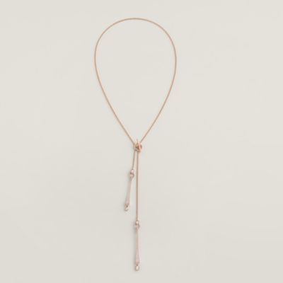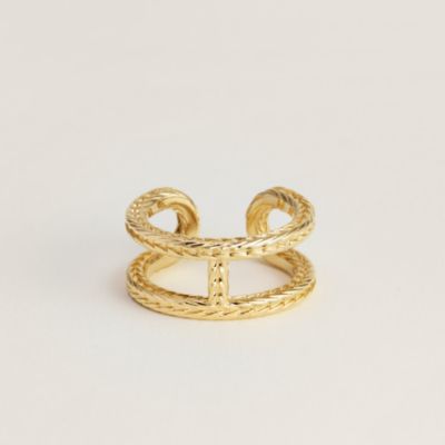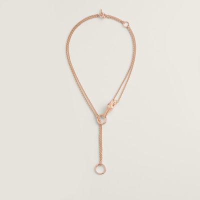 Incarnation of a solar femininity, the Hermès gold jewelry collection morphs precious matter into sculptures of light. Let yourself be seduced by the contemporary softness of our [rose gold rings], or opt for the pure and architectural radiance of our [white gold bracelets]. This quest for harmony continues to the face with our [earrings] with bold volumes, designed to capture every ray. Explore the fluidity of our necklaces and long necklaces, true chains of savoir-faire. Finally, find the House's emblematic codes, where the functional clasp becomes an aesthetic jewel, at the heart of the timeless [Kelly] collection.