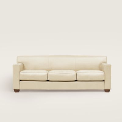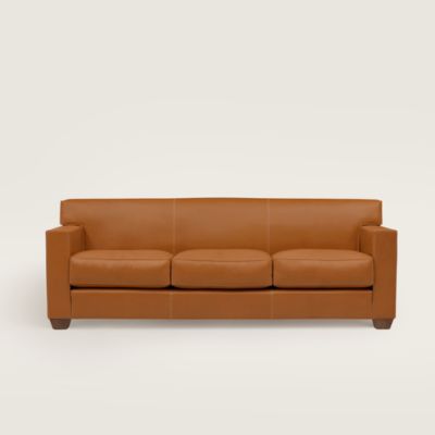 Take a seat on heritage. With its clean lines, slub fabric, and leather details, the Contour sofa doesn't reinterpret classic codes—it introduces them.