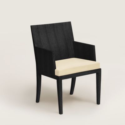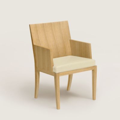 Reeditions Jean-Michel Frank par Hermès dining chair with armrests, Color: Beige/Natural