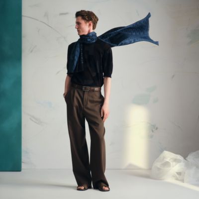 The scarf finds its moment, sweeps around the body and sets the tone for a story in motion.