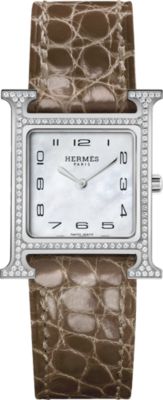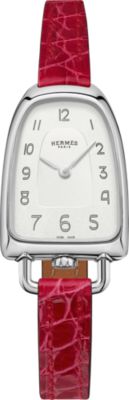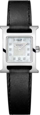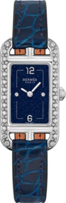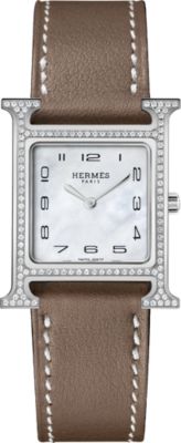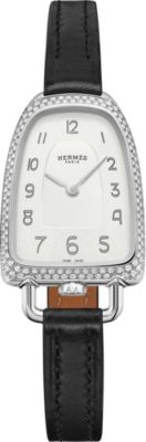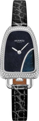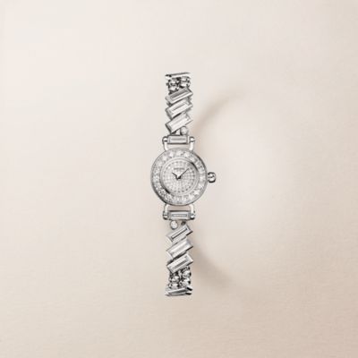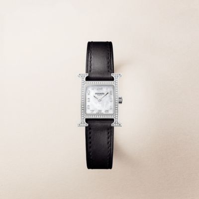 Discover Hermès Time, a singular vision of time combining whimsy and rigor. Explore our collections of [women's watches], where elegance is adorned with precious materials and deep [black] dials. Watchmaking ingenuity is also expressed in our [men's watches], animated by the precision of [quartz] or poetic complications like the [moon phase]. From the sporty lines of the [Hermès Cut] to padlocked icons like the [Kelly], each timepiece reflects our savoir-faire. Finally, personalize your style thanks to our interchangeable [straps].