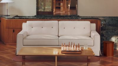 Jackfruit, sycamore and taurillon leather hide their game well: between light and dark, a secret drawer houses the figures of a learned game.