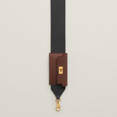 Transform your favorite bags thanks to the Hermès strap collection. An invitation to play and personalization, our straps in braided canvas or leather reveal bold graphic motifs. Explore these [bag accessories] to reinvent your allure according to your desires. Featuring palladium or gold-plated snap hooks, they allow you to vary the carry, from shoulder to crossbody, thus combining comfort, functionality, and a unique style.